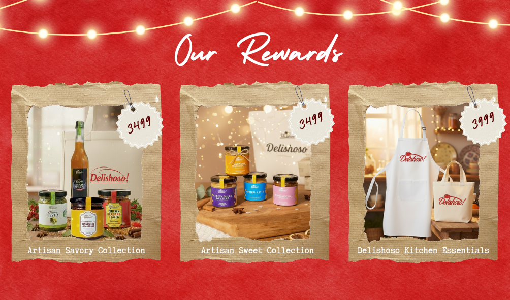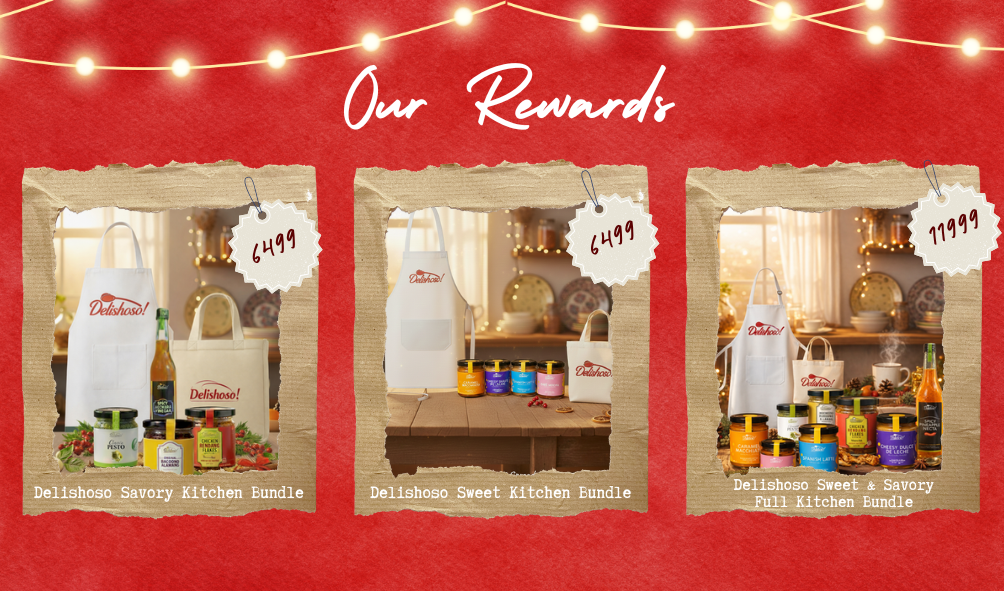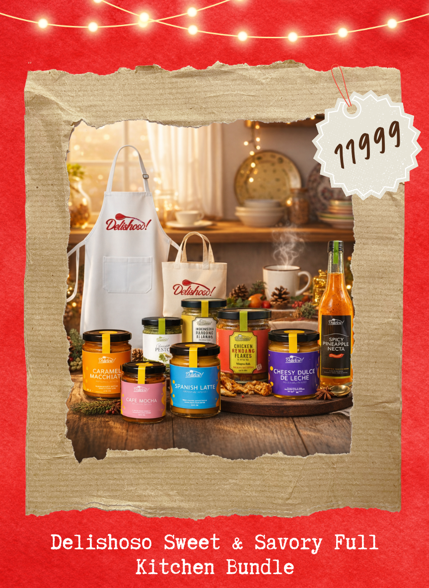 Perfect for gifting, sharing, or stocking your pantry, this set also includes practical kitchen essentials that reflect the heart of Delishoso—food made with care, meant to be enjoyed and shared. Each bundle is beautifully packed and includes surprise freebies as our thank-you.